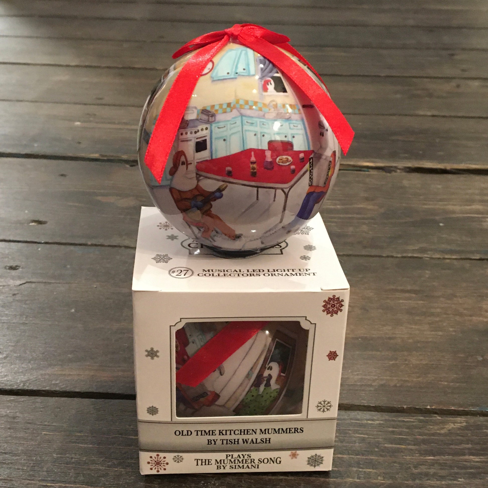 This Light up Bulb plays the Mummers Song by Simani and features art work of the Old Time Kitchen Party Mummers by Tish Walsh